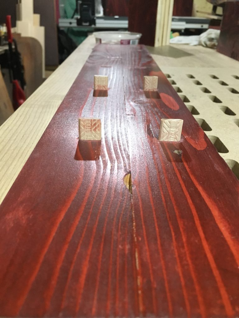 Ces assemblages avec des dominos N°4 ont été redoutable. En utilisant les butées de réglages et un peu de logiques, les usinages s’enchaînent à une vitesse folle. Malgré tout, il y a les usinages qui ne sont pas en bordure de pièces qui requirent un traçage. Il y aussi le choix de faire des mortaises plus larges qui permet de bien régler les assemblages entre eux. L’assemblage à sec et le collage final, bien que facile à pris du temps lui aussi. Là aussi j’ai encore sous estimé le travail à faire ( +100% )