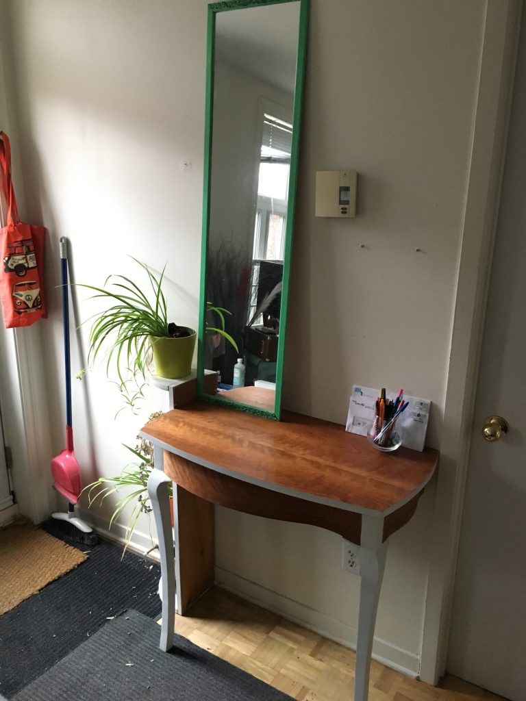 Ce meuble abandonné par un étudiant dans la rue m’a tapé dans l’œil. Un nom était écrit sous ce meuble.
